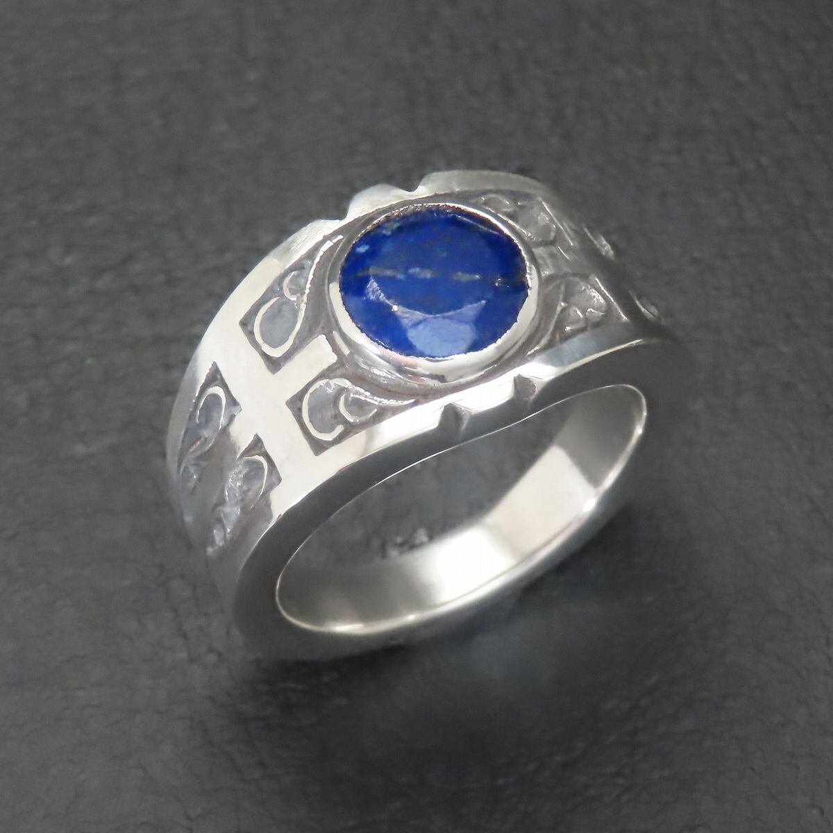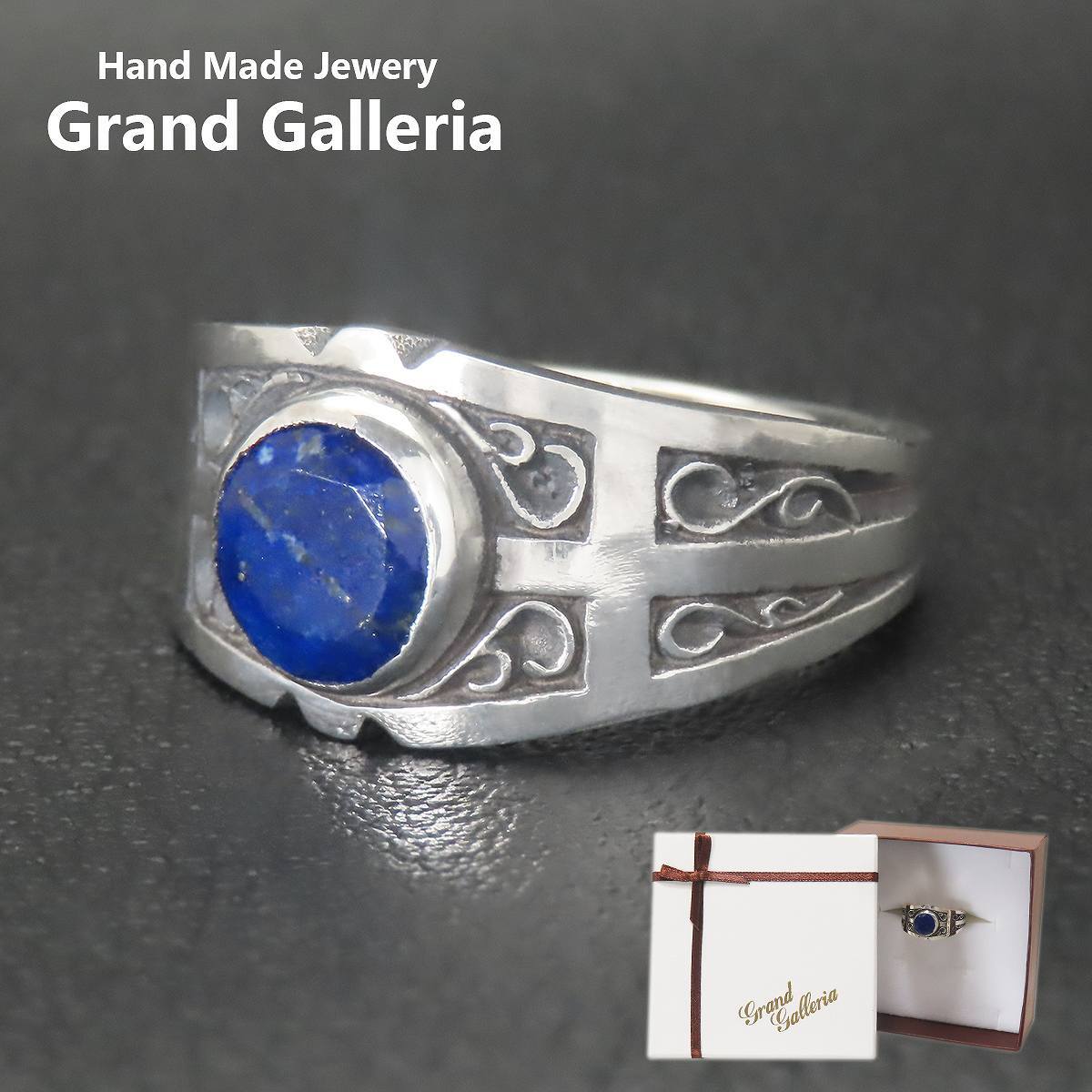 唐草クロスリング 指輪 シルバー925 【刻印無料】 クロス 十字架 唐草 唐草模様 アラベスク リング ラピスラズリ 9月 12月 誕生石 シルバー シルバーアクセサリー メンズ 父の日 クリスマス プレゼント ハンドメイド 手作り ボックス 箱 Grand Galleria グランドガレリア